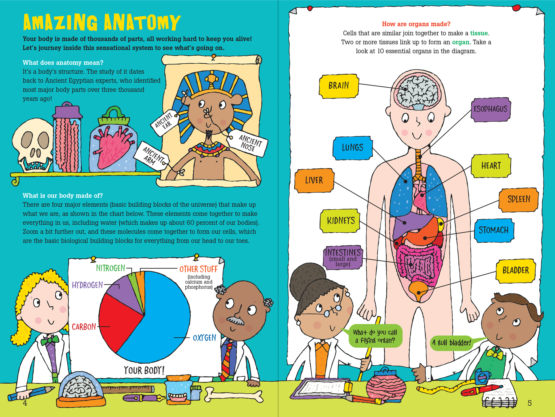 How do bones grow? What happens when we're sick? Why do we fart? Curious minds can find the answers to these questions and over 90 more in this kid-friendly tour of the human body! Jokes sprinkled throughout are sure to tickle your child's funny bone! Quirky, colorful, and educational! Question-and-answer format breaks down information into manageable chunks. Informal, kid-friendly language is breezy and fun. Ages 7 and up. Sturdy hardcover binding. Book measures 6'' wide x 9'' high. 48 pages.