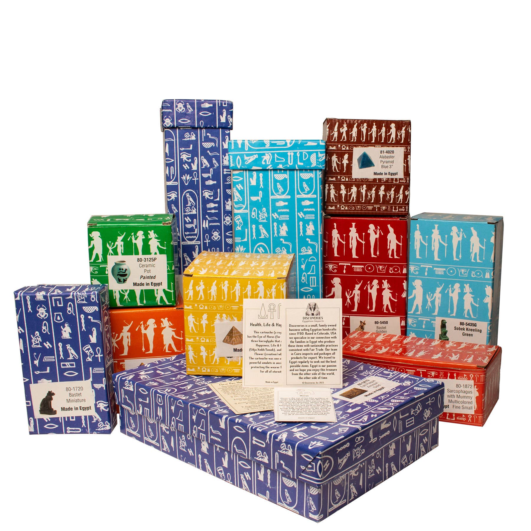 This polymer mold is finished with an antique patina and packaged with information card in a decorative hieroglyphic box.